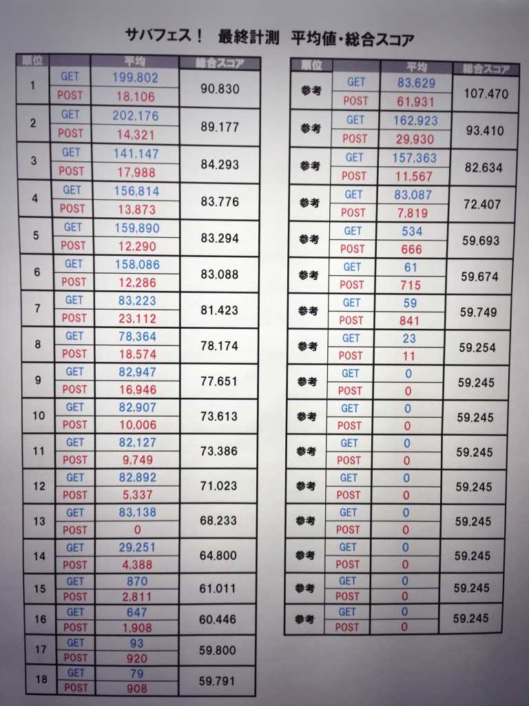 よく見ると右側に参考順位のスコアがずらずら。。 参考スコアとは、レギュレーション違反やサーバ再起動後に ベンチマークが通らなかったチームのスコアということでした。 不安にさせられました。